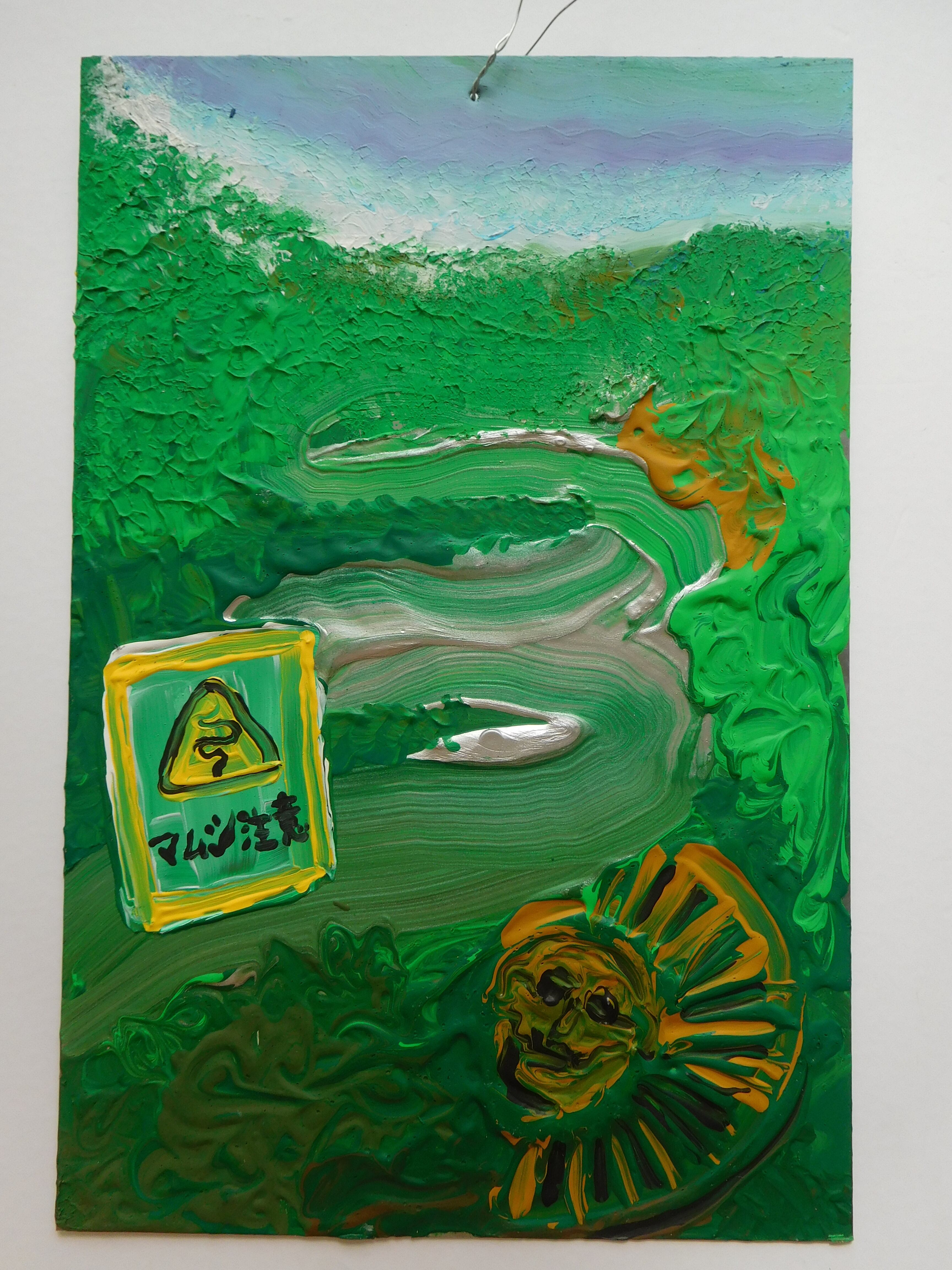 願いが叶ったことや災難困難から助けられたことを神へ感謝し、庶民が絵と言葉で描いた物です。カトリックの習慣で教会へ奉納していました。日本でいう願い事を書い納する「絵馬」に近いです。内容は家族、健康、仕事、人間関係の事など・・・描いた時代のメヒコの人々の暮らしに密着したものが多いです。近年は風刺画や絵日記としても親しまれています。教会付近のお土産屋さんや蚤の市でエクスボトに出会い、創作意欲が沸きメヒコの思い出と自分の身のまわりの出来事を重ね合わせてブリキ絵を描いてみました。